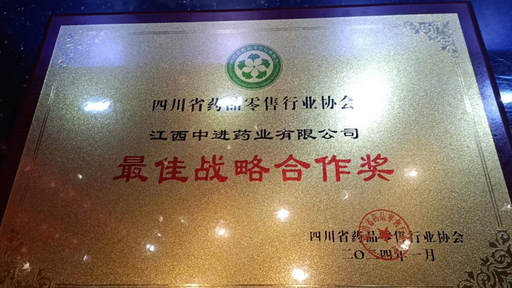 【喜訊】中進藥業榮獲四川省藥品零售行業“最佳戰略合作獎”