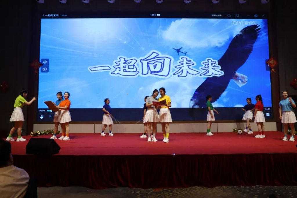 看!那是中進機關人員帶來的舞蹈《一起向未來》,舞臺上十一種顏色的衣服代表每個人不同的狀態,有激情、有清爽、有善良、有溫柔、有活力等,這都是中進色彩,中進因為你們而美好。