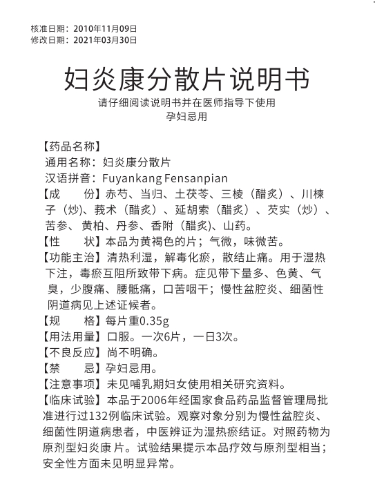 清熱利濕,解毒化瘀,散結止痛。用于濕熱下注,毒瘀互阻所致帶下病。癥見帶下量多、色黃、氣臭,少腹痛、腰骶痛,口苦咽干;慢性盆腔炎、細菌性陰道病見上述證候者。