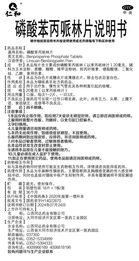 磷酸苯丙哌林片