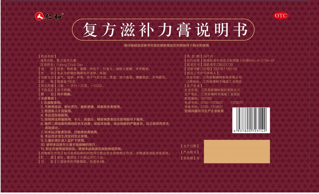 復(fù)方滋補(bǔ)力膏150克*4瓶