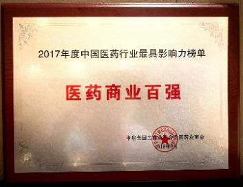 6月,2017年度中國(guó)醫(yī)藥行業(yè)最具影響力榜單,被評(píng)為“商業(yè)百?gòu)?qiáng)”(排名第84位)