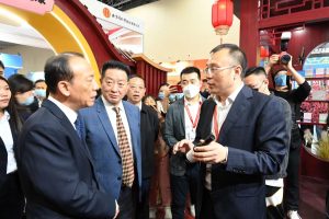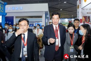 全國(guó)政協(xié)委員,民建中央委員?,仁和股份董事局主席 楊文龍先生與宜春市市委書記于秀明前來(lái)參觀仁和本草酵素展臺(tái),仁和股份大健康經(jīng)營(yíng)委員會(huì)常務(wù)副主任 副總裁 彭永振先生向兩位領(lǐng)導(dǎo)介紹仁和本草酵素的特色和優(yōu)勢(shì)。