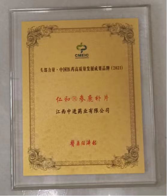 會議上,對頭部力量·中國醫藥高質量發展成果企業和成果品牌進行了隆重的頒獎典禮;中進藥業被評為頭部力量·中國醫藥高質量成果企業,仁和?參鹿補片被評選為成果品牌兩項殊榮。
