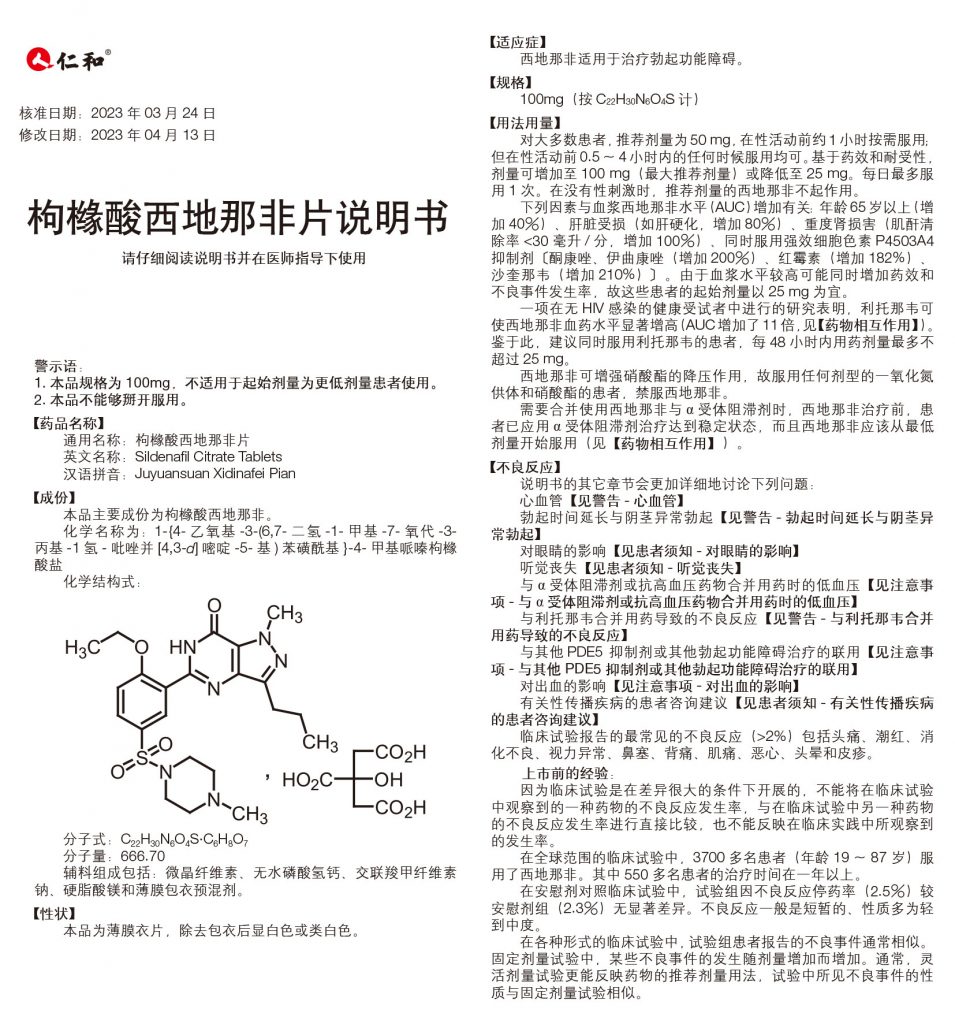 枸櫞酸西地那非片(100mg/片 *5片/板*1板/盒)