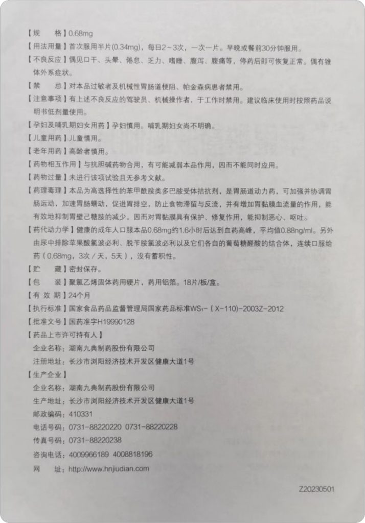 用于因胃排空延緩、胃食管反流、胃炎、食道炎引起的上腹飽脹、疼痛、惡心、嘔吐、噯氣、反酸、食欲不振、消化不良及便秘、糖尿病性胃輕癱和惡心嘔吐時(shí)的對(duì)癥治療。