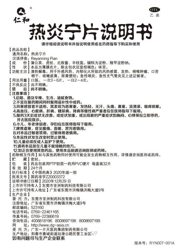 清熱解毒。用于外感風熱、內郁化火所致的風熱感冒、發熱、咽喉腫痛、口苦咽干、咳嗽痰黃,尿黃便結;急性咽炎、急性支氣管炎見上述證候者。